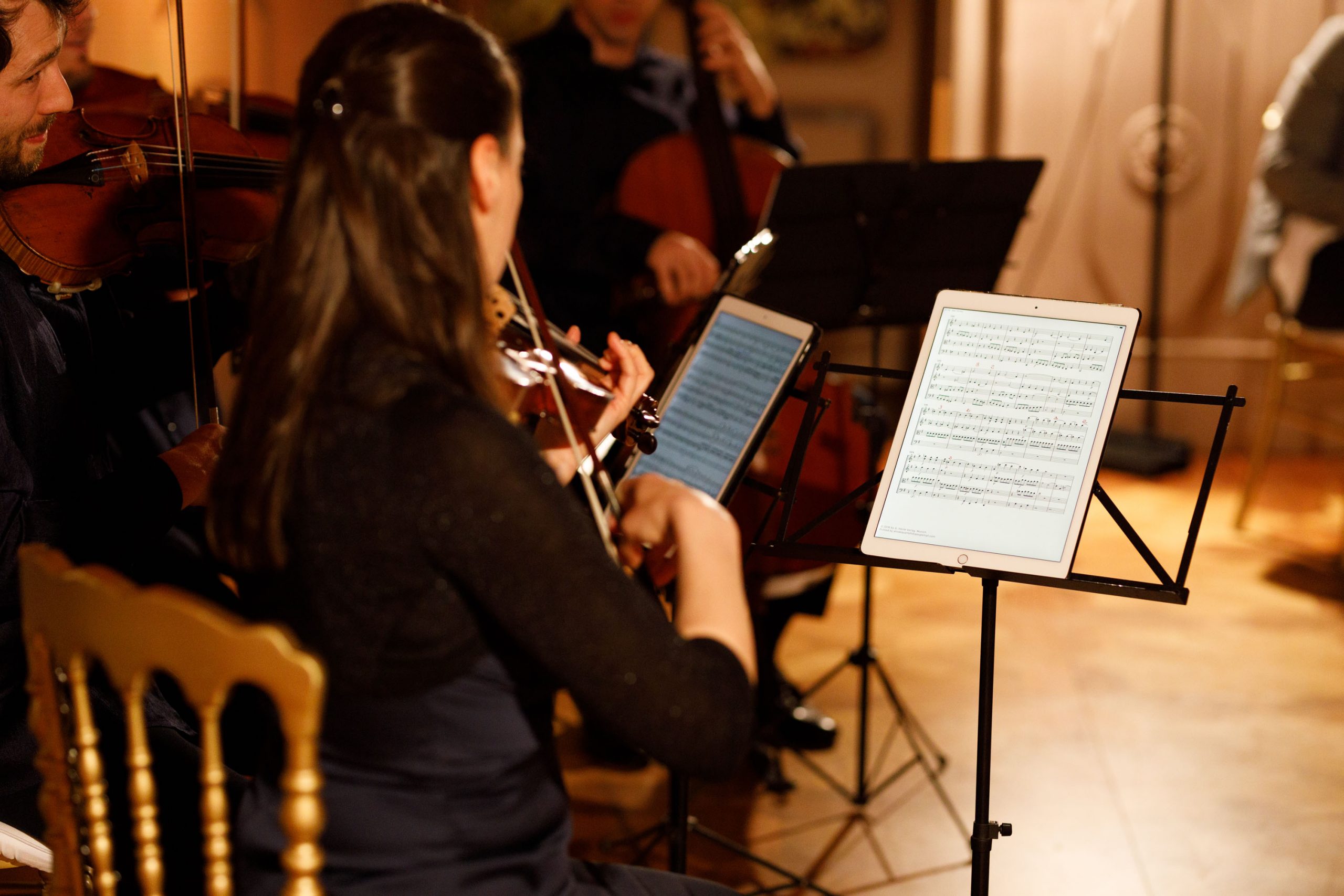 Lei è Simona Marchesi, figlia di Gualtiero Marchesi, arpista e professoressa di musica. È sposata con Enrico Dandolo e insieme hanno tre figli, Guglielmo, Bartolomeo e Lucrezia Dandolo Marchesi. Non sono cuochi ma musicisti, al violino, violoncello e pianoforte rispettivamente. Guglielmo e Bartolomeo, insieme alla moglie del primo, Eugenia Ottaviano (violino) e Gregor Hrabar (viola) sono l’Alinde Quartett, che il 19 marzo ha accompagnato una cena in onore del compleanno del Maestro Marchesi (e dei dieci anni della Fondazione che porta il suo nome) alla Terrazza del Tremezzo. In scaletta, Spaghetti freddi al caviale, Dripping di pesce, Riso oro e zafferano, Achrome di branzino e Fondente al cioccolato con salsa di ribes rossi, inframmezzati da una selezione di brani eseguiti dal Quartetto. Mai, però, durante il servizio, perché «per papà era inconcepibile mangiare e ascoltare musica allo stesso tempo. Diceva che i sensi si otturano, e invece devono rimanere liberi di percepire tutto interamente. Stessa cosa valeva per il vino, che in più bisognava bere da solo, religiosamente».