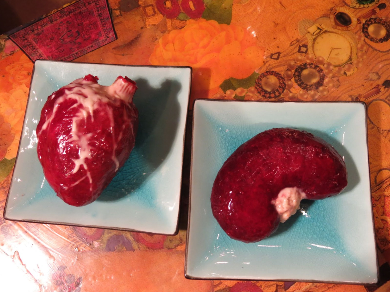 Prop realizzati da Janice Poon per simulare organi umani crudi. Courtesy of Janice Poon