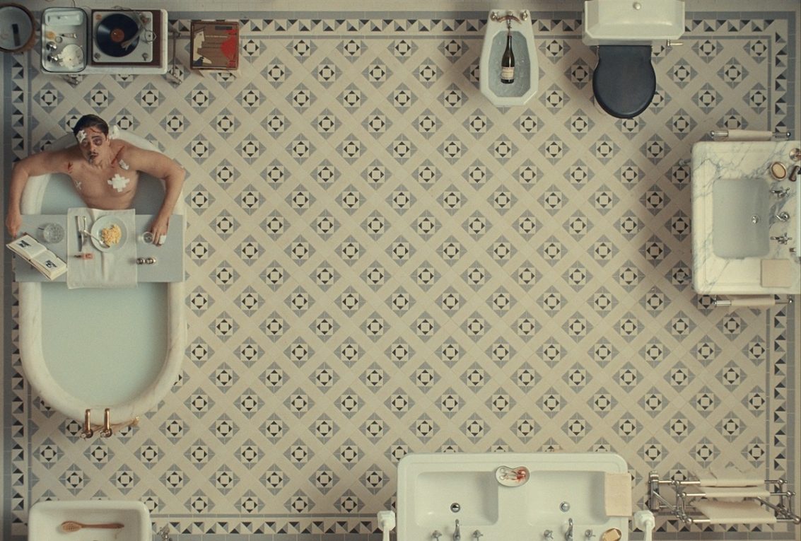C’è un goduriosissimo piano sequenza dall’alto con Benicio dentro una vasca da bagno girato a 120 fotogrammi al secondo che è deliberately Wes Anderson, una partita di basket instant cult featuring Riz Ahmed, Tom Hanks e Bryan Cranston, il debutto chez Wes Anderson di Michael Cera, che pare lui stesso un personaggio creato da Wes Anderson, il villain meravigliosamente cartoonesco di Benedict Cumberbatch, Scarlett Johansson forte, tosta, indipendente (con treccia da Oktoberfest), i pigiami clamorosi di Zsa-zsa by Milena Canonero, i camei di Willem Dafoe, Charlotte Gainsbourg, Dio – pardon – Bill Murray. E, al centro, un’operazione su scala globale conservata nei contenitori più analogici che vi possiate immaginare: «Il padre di mia moglie, un ingegnere libanese», racconta Wes, «un giorno le mostrò delle scatole di scarpe piene di progetti e le disse: “Se un giorno non riuscirò più a gestirli, devi sapere cosa fare”. Era un gesto folle e tenero insieme. Il film è dedicato a lui».