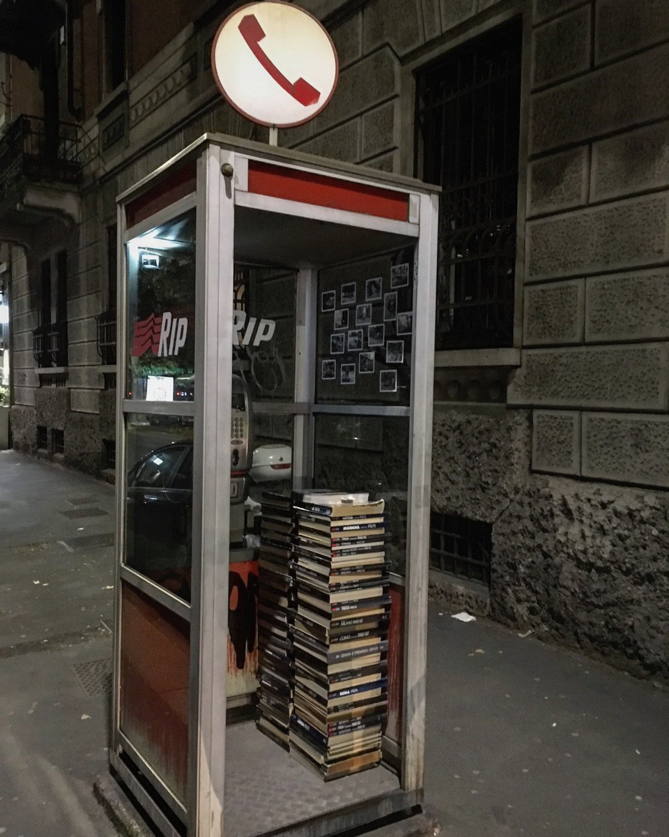 “Daddy what is a cabina?” mi sento rispondere. WTF? Mia figlia non ha idea di cosa sia una cabina telefonica, di quante bestemmie tirate per via dei gettoni che non entravano, delle porte a soffietto che non si aprivano, o alla puzza di sigaretta e vomito di chi aveva telefonato prima di te. Tutto questo mentre andiamo a ricercare su internet una cabina telefonica. Detto questo, stacco temporale allo venerdì 9 giugno, quando in Pizza Cavour, chiunque di voi, millennials et amanti di istallazione e arte contemporanea ha potuto vedere dal vivo una reliquia del genere: la famosa cabina SIP, presentata e rinominata R.I.P., in occasione di Milano Photo Week 2017, dall’artista Moronauta. Una cabina del telefono sopravvissuta all’era digitale che racconta il progetto RIP. Il tutto con il patrocinio di PUNTO, un duo curatoriale, una collaborazione, composto da Elisa Lemmo e Giorgia Quadri.