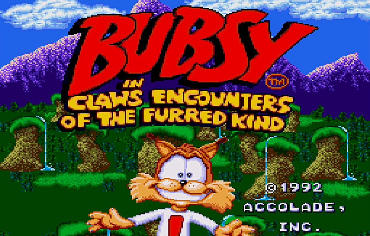 Questa è la schermata iniziale del suo primo gioco, e Bubsy ha già l’espressione di uno che è stato sequestrato e ride sotto minaccia armata.