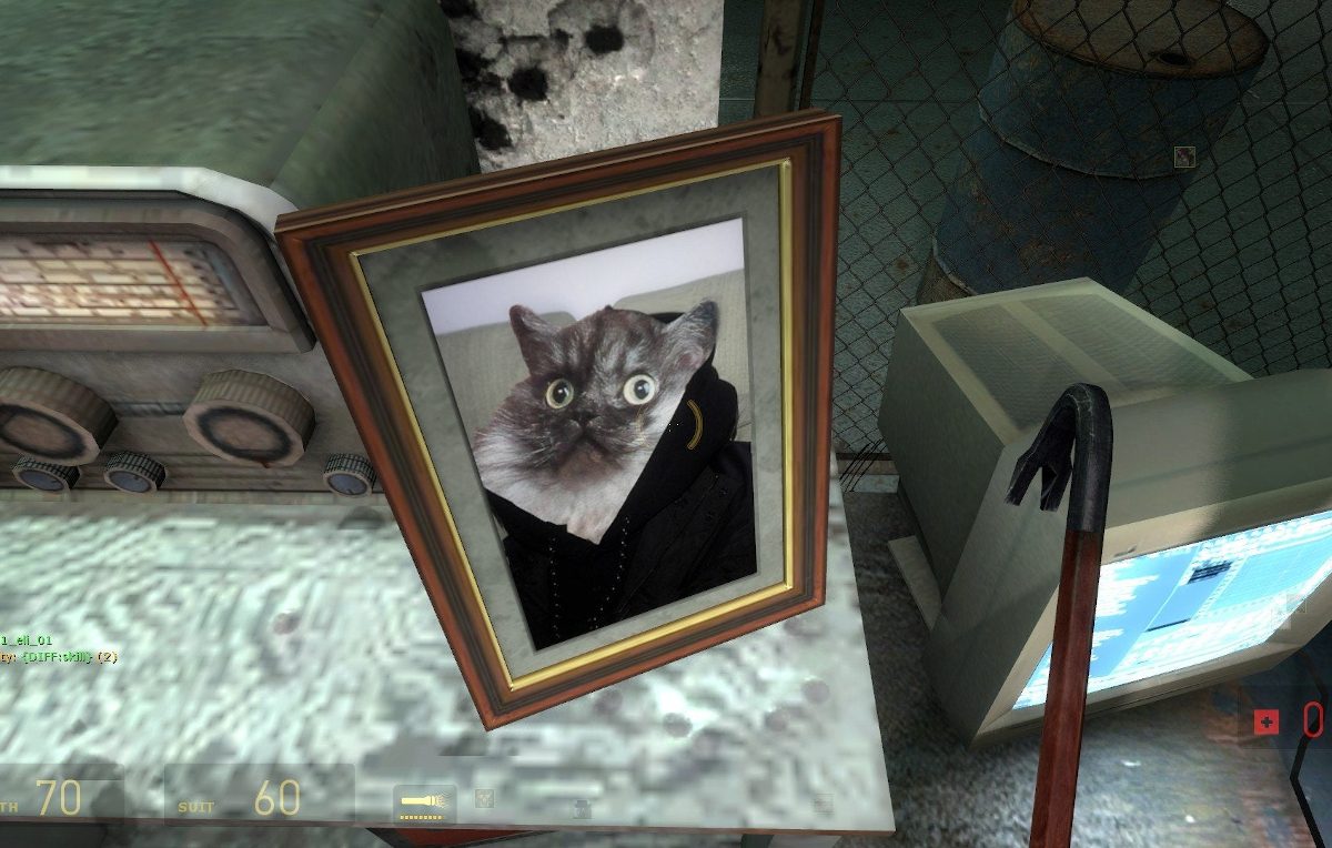 Se del gatto più famoso del mondo non sapremo mai se è vivo o morto finché non ci decideremo ad aprire la scatola, il gatto di Half-Life 2 è diventato famoso anche se nessun giocatore l’ha mai potuto ammirare. Gli ultimi ad averlo visto sono stati il dr. Kleiner e Barney, quando l’hanno inserito nel loro prototipo di mini teletrasporto. Il gatto ne è uscito con ciò che c’era all’interno rivoltato all’esterno e viceversa. Barney ha ancora gli incubi e ogni tanto gli sembra ancora di sentirlo miagolare.