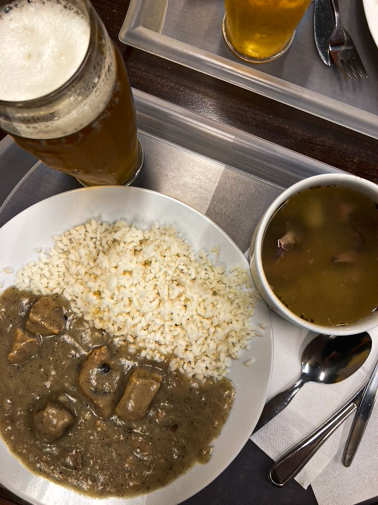 Il concetto è quello di un classico self service: scegli il piatto nel meno tempo possibile per non ingombrare il traffico, prendi il tuo vassoio, le posate, fai l’ordine direttamente alla cucina poi ti sposti sul lato bevande – birra, acqua, qualche bibita – e, infine, alla cassa, dove un’altra signora guarda ciò che hai preso, ti parla in ceco, ti indica il totale sullo schermino della casa elettronica: 200 corone, circa otto euro, comprensivi di birra e hovězí vývar s drobením, brodo d’antipasto con briciole e verdure, perfetto per l’idratazione. È un prezzo lontano da quello di ogni altro luogo dorato del centro, ma del resto il motivo c’è. Più che al sogno di ricchezza asburgico, più che al rigore boemo, al Jídelna Světozor si respirano i resti di un’eredità che intreccia la prima industrializzazione con l’era sovietica.