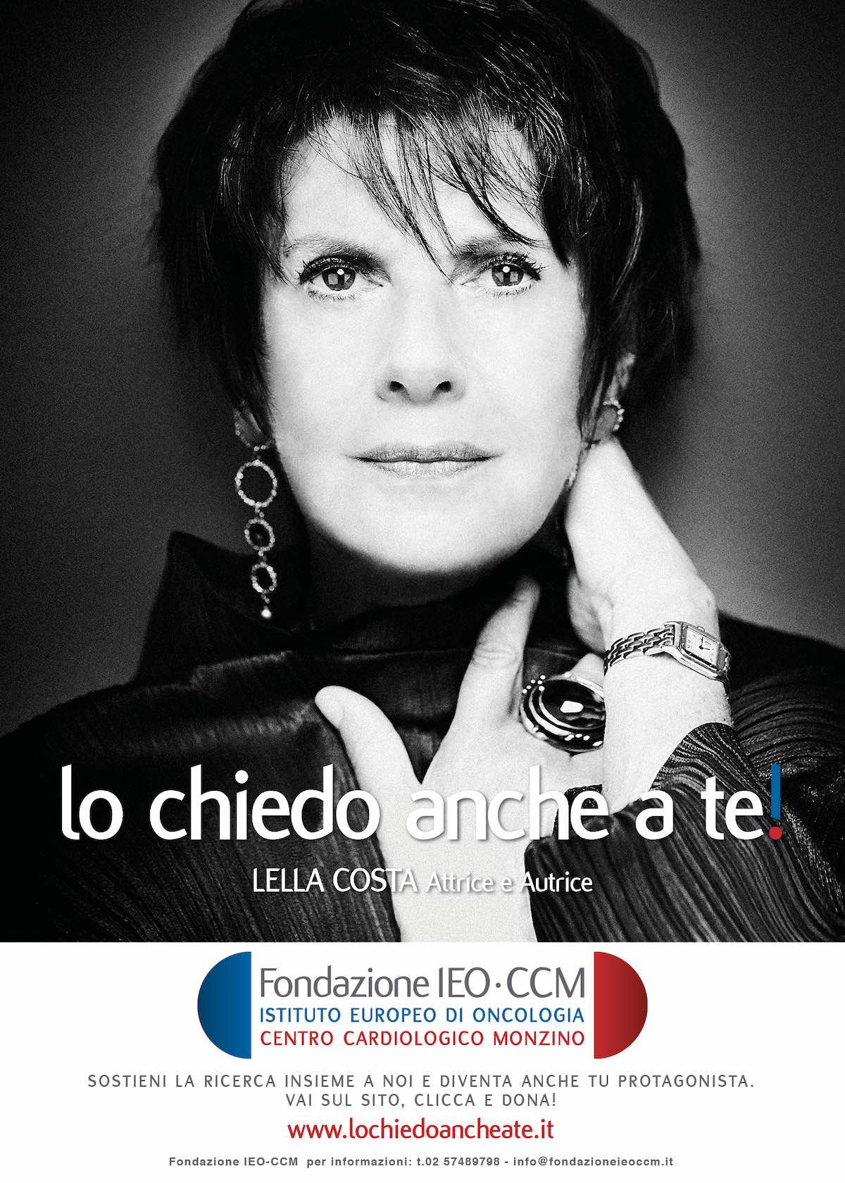 Per amplificare il messaggio, Lo chiedo anche a te! sarà visibile sugli schermi digitali distribuiti nelle città di Roma, Torino e Bologna e in affissione sui muri di Milano dove sarà presente anche su tutte le pensiline del circuito BikeMi. L’appuntamento, inoltre, è fissato per l’11 dicembre presso il Teatro Vetra di Milano, dove un Charity Dinner Gala raccoglierà fondi destinati alla ricerca. È inoltre possibile contribuire alla campagna e alla diffusione del suo messaggio cliccando sul sito ufficiale dell’iniziativa, lochiedoancheate.it, dove sono disponibili tutte le istruzione per partecipare attivamente supportando così la ricerca in campo oncologico e cardiovascolare.