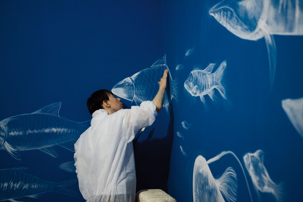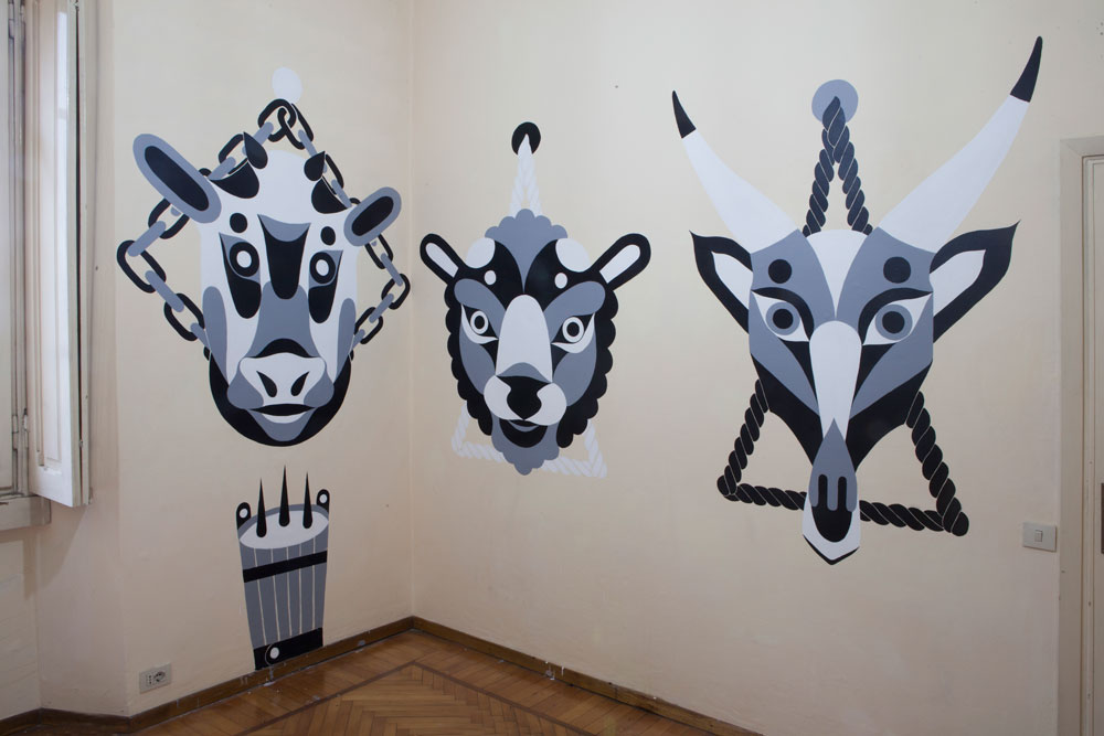 Un esempio? Si inizia con un bassorilievo in stile pop della Scrofa semilanuta, il primo simbolo di Milano, per poi passare in stanza piene di colori, numeri, pesci, orti, campanili, tovaglie. C’è anche una stanza affidata a un tatuatore, Luca Font, a cui è affidata la stanza del macellaio.
