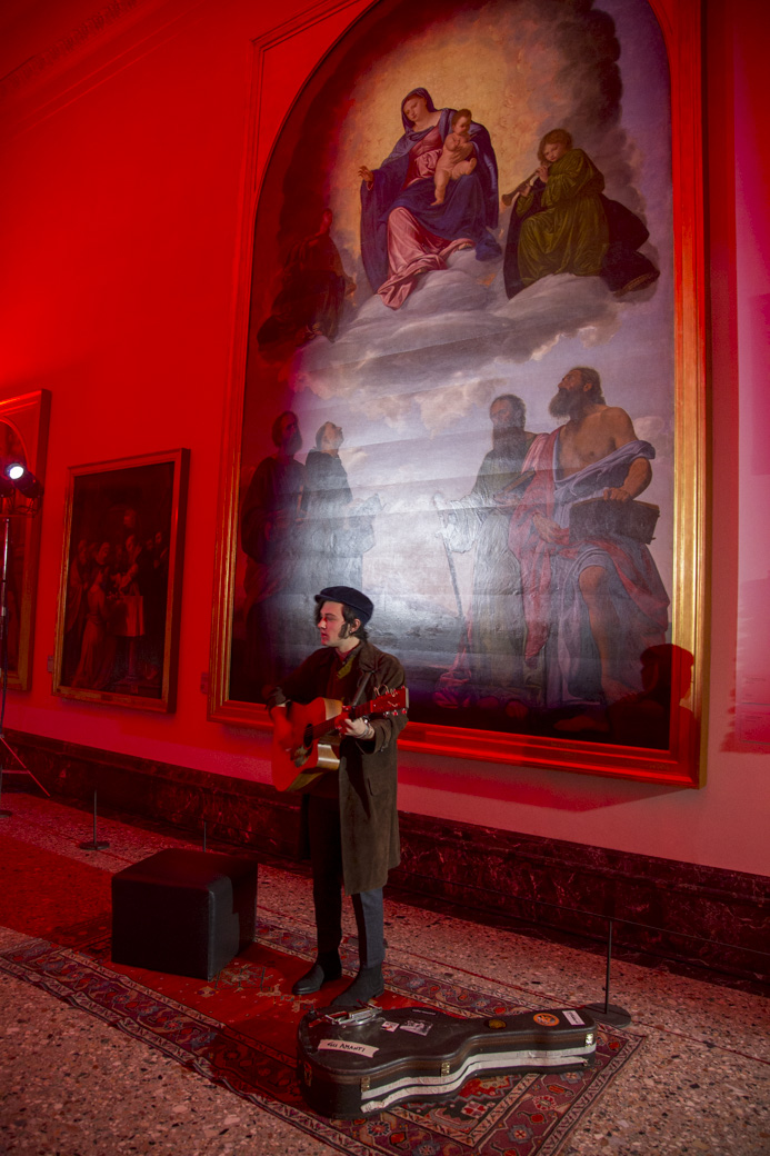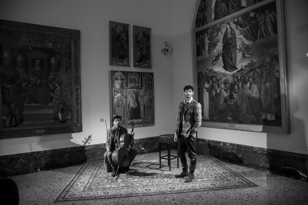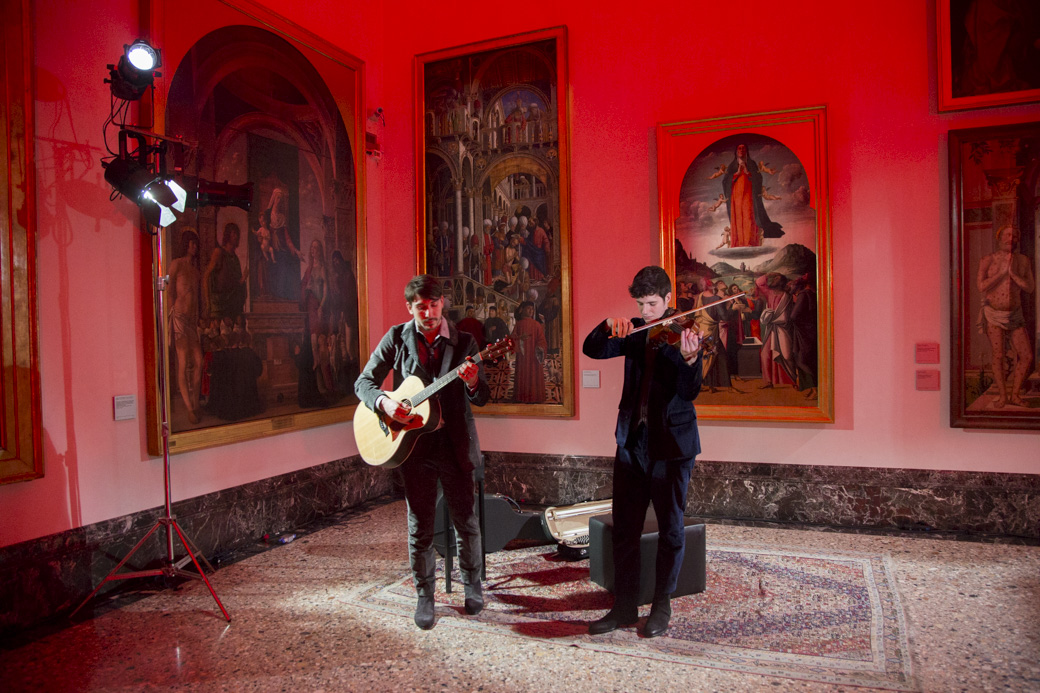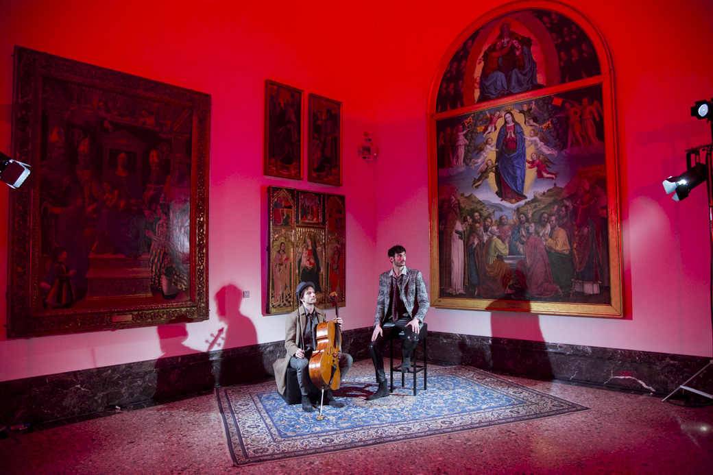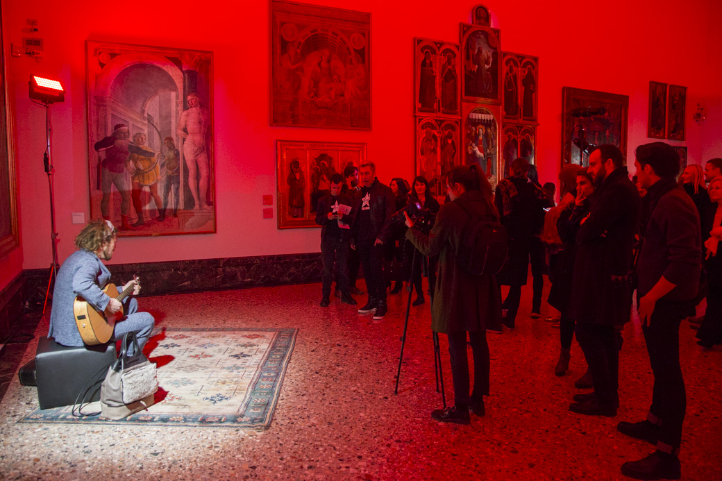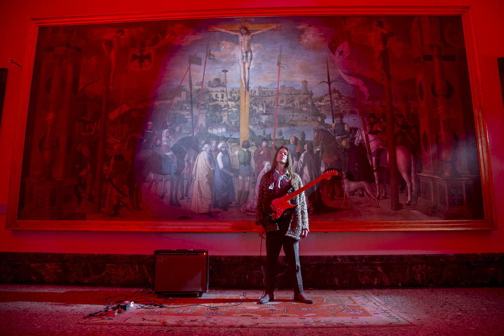 Diciamo che ci sono diversi modi di lavorare unendo l’arte e la moda. Spesso e volentieri, però, si trovano soluzioni sterili, unendo una cosa e l’altra semplicemente, o andando nei luoghi della moda. Quando sono venuta alla Pinacoteca di Brera ho cercato di capire cosa sentissi e quello che sentivo era spiritualità, una sorta di religiosità che arriva da questi quadri. Poi a me piace la musica, sono stata anche musicista per un breve periodo della mia vita, e quindi ho deciso di lavorare sull’iconocità del rock e delle star degli anni Settanta. Abbiamo cercato canzoni rock e pop che parlassero di questo argomento.