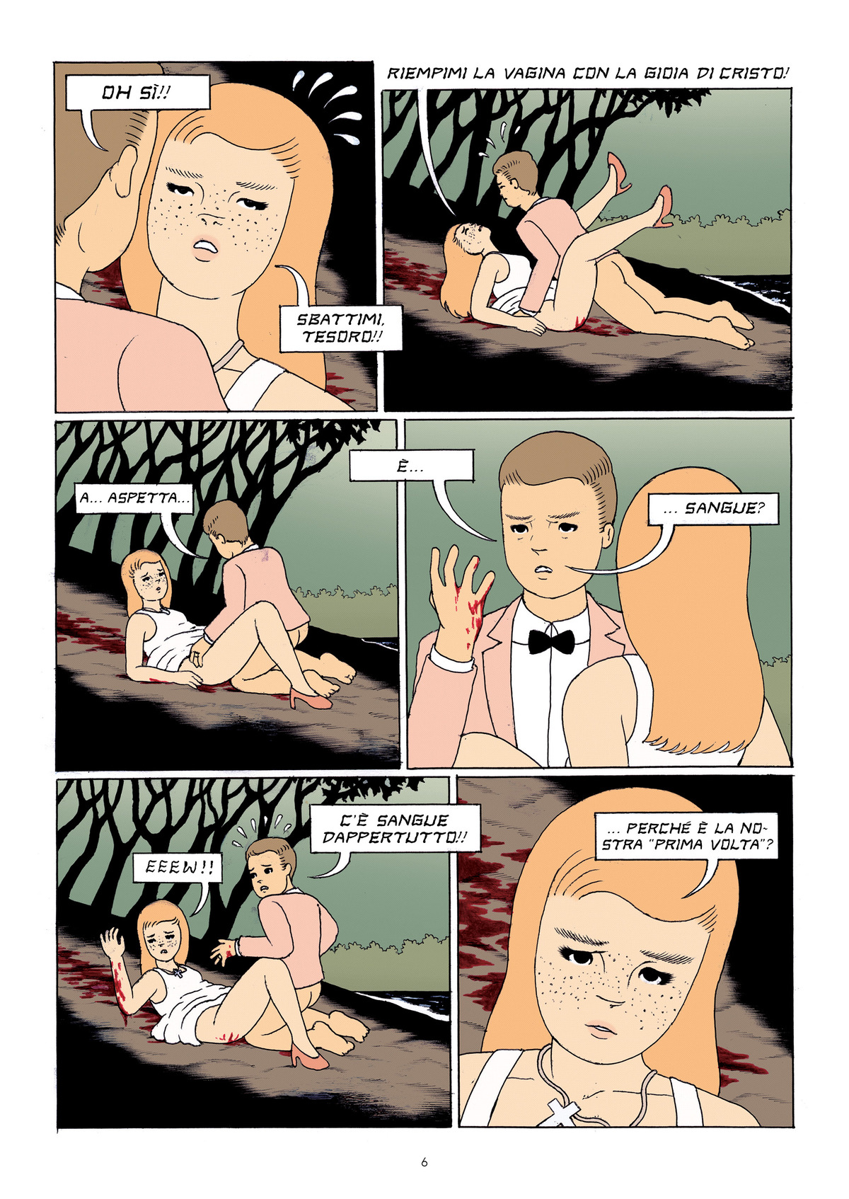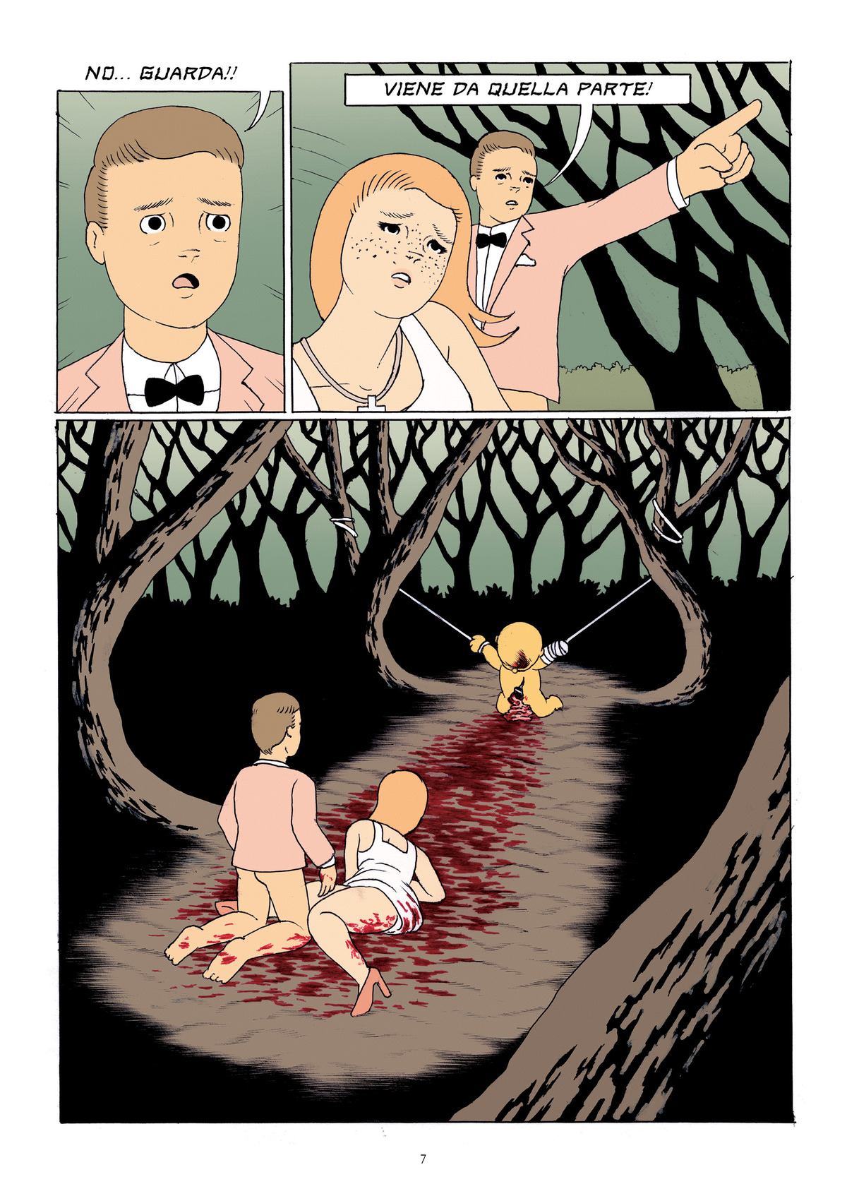 Domani, giovedì 24 febbraio, arriverà in libreria per <a href="https://www.oblomovedizioni.com/">Oblomov Edizioni</a> <em>Crash Site</em>, la graphic novel di Nathan Cowdry. Se non l’avete mai sentito nominare, stiamo parlando di uno dei giovani fumettisti e illustratori più interessanti del panorama internazionale: la sua ultima opera è una commedia nera dallo stile tarantiniano e con una narrazione complessa, tutta costruita sul flashback. Al centro della storia, ambientata nella foresta amazzonica dopo un incidente aereo, c’è un cast improbabile di personaggi, tra cui la protagonista Rosie – una giovane trafficante di droga –, il suo cane Denton, delle mutande parlanti. Ecco le prime tredici tavole, in anteprima sul sito di <em>Rolling Stone</em>.