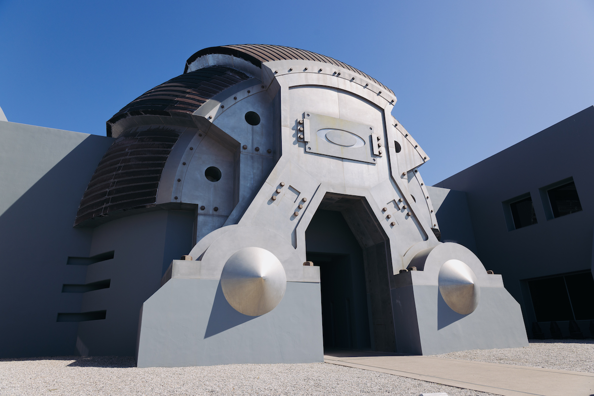 L’headquarter di Oakley è un monolite post-apocalittico posto ai bordi dell’Orange County, nella Southern California. Il suo celebre portone d’ingresso incute un timore pari alla voglia di fotografarlo. Con le colline di SoCal sullo sfondo sembra la porta d’accesso per un’altra dimensione. A varcare la soglia ci ritroveremo nella saga di MadMax? O al di fuori dell’atmosfera in 2001 – Odissea nello spazio? O, ancora, in qualche altra invenzione hollywoodiana?