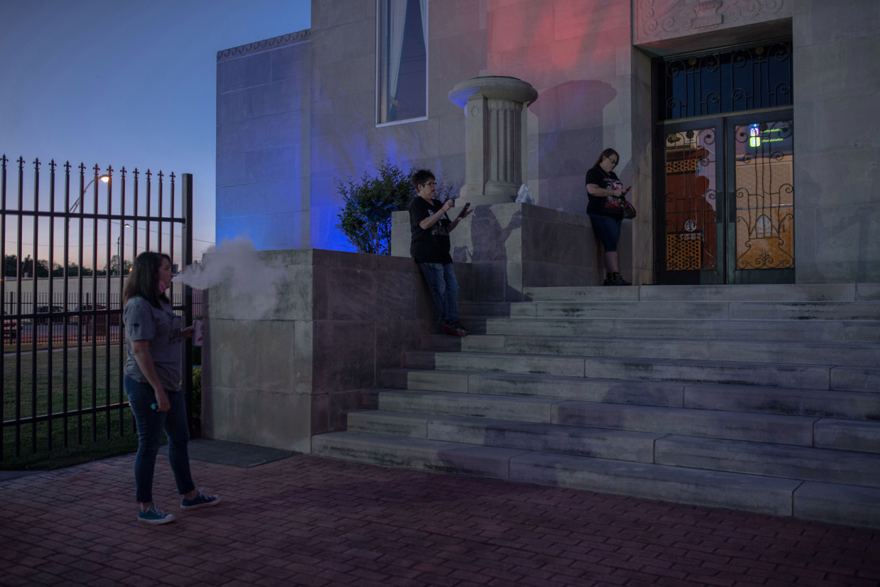 I fan mantengono la distanza anche all’esterno, nella zona in cui si può fumare.<br /><br />Foto di September Dawn Bottoms per Rolling Stone