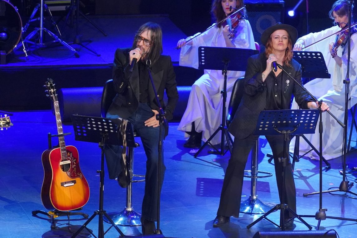 Protagonista della prima serata di giovedì 23 ottobre Lucio Corsi, vincitore del Migliore album in assoluto e della Miglior canzone con Volevo essere un duro, che è apparso molto più a suo agio in questo ambiente che al Festival. Tanto che si è spinto a dichiarare: «Il mio sogno è che il Premio Tenco abbia lo stesso livello di attenzione e di visibilità del Festival». Al suo fianco Emma Nolde, che ha aperto la serata con Lontano lontano, in un’interpretazione solida e struggente, e pure lei sembrava sentirsi a casa: «È dove volevo essere. Questo premio rappresenta quello che piace a me. Ogni anno premiano gli artisti che avrei premiato io, è bello sentirsi capiti». La guest star internazionale era invece il compositore Goran Bregović (Premio alla carriera), che ha ringraziato con fare istituzionale: «Sapere che un Paese come l’Italia, di Monteverdi, di Verdi, di Sanremo, abbia curiosità per un compositore come me, che viene da una cultura musicale piccolissima se paragonata alla vostra, mi emoziona profondamente». Ma poi ha spiazzato, come nel suo stile. Su un brano dal sound danzereccio, ha scosso la platea: «Cosa ridete, questa canzone parla di stupro». Così come nel backstage, dove a un certo punto è arrivato un assistente a porgergli una busta della spesa, che però non conteneva prodotti tipici italiani ma una bottiglia di Jack Daniel’s, e si è rivolto agli organizzatori con l’ingenuità di un bambino consapevole di compiere una marachella: «Ho portato un po’ di allegria…». A 75 anni, c’è da riconoscere che la tempra è di quelle da invidiare. Gli altri premiati: Ginevra “The Voice” Di Marco (Targa Miglior album di interprete), Lamante (che ha spoilerato uno splendido nuovo brano, La magia più forte della morte), oltre alle esibizioni di Alessio Lega e Stefano Tessadri.