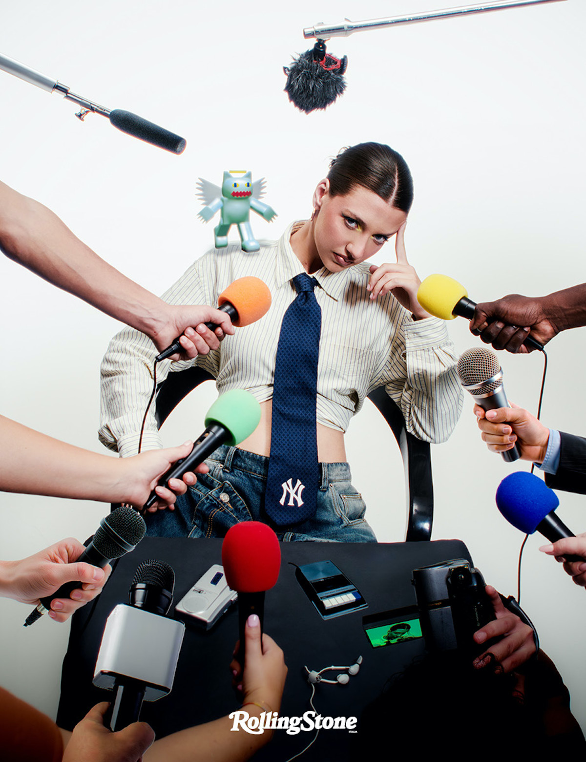La sua immagine, però, è all’opposto di quella dei rapper canonici. Così come la sua storia. È cresciuta in un paesino di 300 abitanti («tutti vecchi») tra le montagne del Canton Ticino; i genitori le hanno imposto di studiare il violoncello e la musica classica; ha il viso pulito e nessuna street credibility alle spalle. Ed è timida, molto. Lassù tra i monti ascoltava Notorious B.I.G., che ama citare nei pezzi, ma anche Gemitaiz e Fabri Fibra. Tra questi contrasti, si sente un ibrido, una rapper a cui piace sperimentare, una giovane donna svizzera alla conquista del mercato italiano. Per noi, è sicuramente una delle penne più fresche della scena, con quel modo tutto suo di mischiare italiano e inglesismi (quando parla è tutto un crazy, uno struggle, una shit), tenendo in mano la old school senza la paura di flirtare con produzioni che giocano, a seconda dei casi, con il pop o ritmiche UK. «Manca un po’ di coraggio», dice parlando della scena. Ma lei, Ele A, di coraggio ne ha eccome. Nonostante l’ansia pre-shooting che sta gestendo quando ci incontriamo sul set.