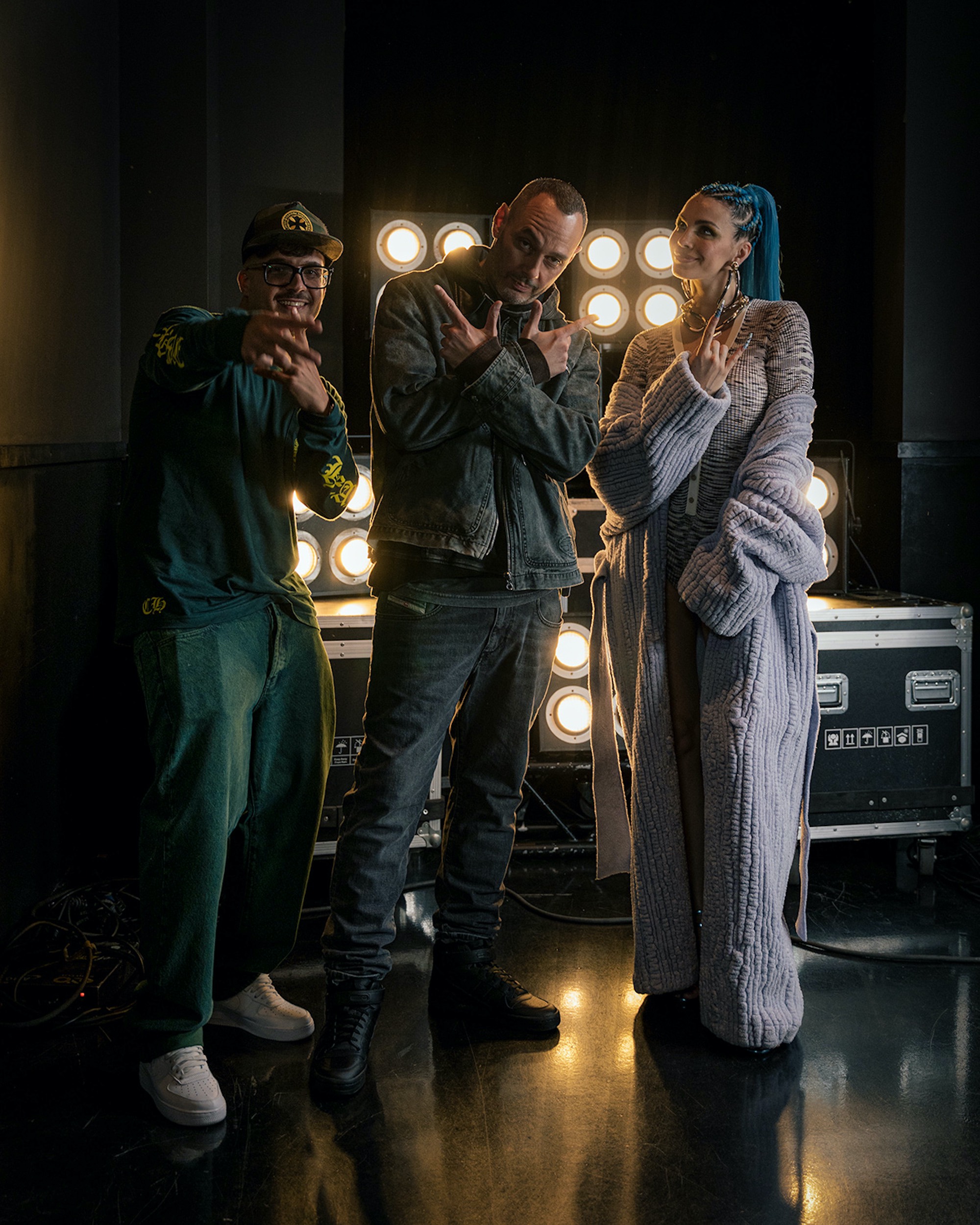 Partendo da tre città rappresentative dell’hip hop italiano – Roma, Napoli e Milano – i concorrenti aspiranti rapper si sfidano lungo otto episodi in prove di freestyle, rap battle, videoclip e, soprattutto, nei featuring con Guè, Madame, Marracash e Noyz Narcos, finché uno, solo uno, si aggiudicherà il premio di 100 mila euro. A esaminare i rapper della nuova scena ci sono tre giudici, ora seduti davanti a me in occasione della giornata promo dello show che potrete vedere dal 19 febbraio: Fabri Fibra, Rose Villain e Geolier. Tre artisti molto diversi tra loro per stile, storia, attitude, ma con in comune una passione totale – tra il nerdismo il fanatismo e la devozione – per la musica rap. Rose ce lo dice subito, nella prima puntata, che «il rap è una cosa seria, non è un gioco». E la forza di questo show è proprio quella di giocare seriamente con la cultura hip hop: competizione, voglia di rivalsa, desiderio di essere i numeri uno sono caratteristiche sia del rap che del talent, quindi un talent musicale rap è una competizione al quadrato.