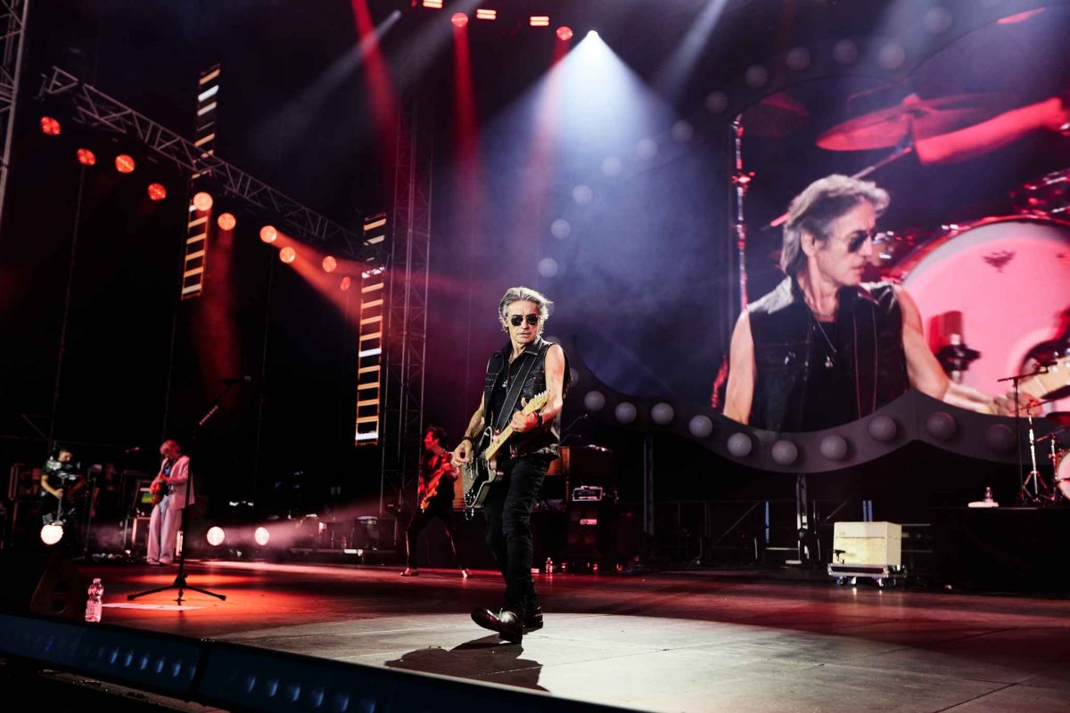 Difficile dire quali momenti abbiano emozionato più gli spettatori, anche perché la gente ricopre sempre di affetto e applausi i vecchi amici, che siano canzoni che cantano da decenni o i musicisti di tutte le band che hanno suonato con Ligabue, che si sono dati il cambio sul palco per accompagnare il capobanda. Ma con tutto il rispetto per le altre trovate a effetto, il pubblico visibilio si è chiaramente impennato per l’assurda Cadillac gigante, grande abbastanza per ospitare un palco (auto)mobile, sul quale sono state eseguite, Si Viene E Si Va e Il Meglio Deve Ancora Venire. Uno “stunt” un po’ alla U2, alla quale più tardi è stata contrapposta una trovata a chilometro zero: due immense bottiglie di Lambrusco stappate sul palco – mentre il pubblico viene inondato da due fontane d’acqua. “20 anni di Campovolo. 30 anni di Buon Compleanno Elvis. 35 anni con voi”, dice lo schermo. Fine.