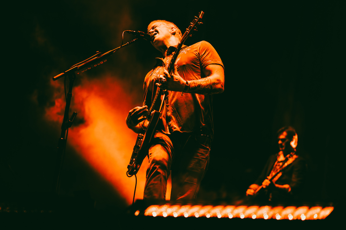 Non è un segreto che negli ultimi anni il leader dei QOTSA abbia avuto più volte a che fare con la morte: nel 2013 ha rischiato di lasciarci le penne per delle complicazioni emerse in sala operatoria durante un intervento chirurgico; all’inizio del 2022 ha visto morire l’amico fraterno Mark Lanegan; e sempre quell’anno gli è stato diagnosticato un cancro, poi fortunatamente rimosso. Infine, l’estate scorsa, è stato ricoverato d’urgenza mentre era in tour in Italia, vedendosi costretto ad annullare proprio la data del concerto di Romano D’Ezzelino, finalmente recuperata a un anno di distanza. Il giorno dopo aveva anche tentato di rimettersi in pista, tenendo stoicamente un ultimo concerto a Milano (di cui lui non ricorda nulla, ma noi sì), prima di decidere di annullare il resto della tournée.