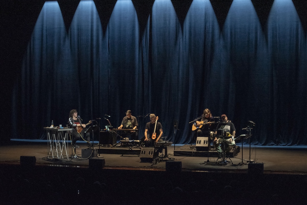 A Roma violoncello, ukulele, chitarre e sintetizzatori hanno permesso di portare in sala Petrassi tutto questo ben di Dio, with a little help from qualche suono campionato. Sul palco, un’atmosfera quasi da studio, tutti seduti tra poltrone e poltroncine, con il capobanda appollaiato sulla destra alle prese con manopole, triangoli, tamburelli e campane. I Magnetic Fields sono un’enciclopedia itinerante del pop. L’amore a cui il loro album è intitolato, ci azzardiamo a dire, è solo un pretesto per confezionare (e in questo caso portare sul palco) un’opera che è anche un grande divertissement fatto (bene) di mille stili, spesso attraversati da una vena di humour. Il miracolo, a Roma, è che si passa da una canzone all’altra senza mai disconnettersi dalla visione di Merritt. Ed è tutto l’insieme che conta, non tanto se ci hai trovato dentro il crooning di Scott Walker o le armonie dei Beach Boys, i colori degli XTC o i synth degli Human League. Senza dimenticare che il gruppo preferito di Merritt sono gli ABBA.