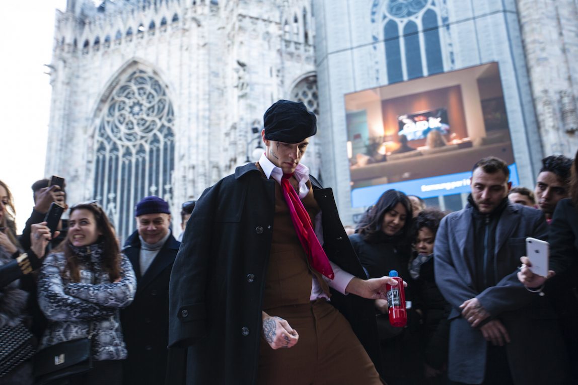 Manca poco più di una settimana al ritorno di Achille Lauro sul palco dell’Ariston con il nuovo singolo Me ne frego e, dopo il successo della scorsa edizione con Rolls Royce, il cantante si prepara a stupire anche quest’anno. Nel frattempo, ieri Lauro ha sorpreso i passanti in Piazza Duomo a Milano, dove si è improvvisato artista di strada destreggiandosi tra tele e pennelli, raffigurando un lupo, un fulmine, una maschera e una corona.