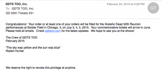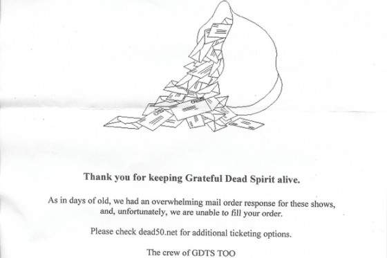 Se state leggendo ora la notizia del concerto di addio dei Grateful Dead mettetevi il cuore in pace: è già troppo tardi. I biglietti per i tre spettacoli a Chicago (dal 3 al 5 luglio) sono esauriti.