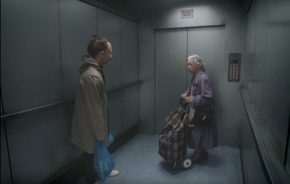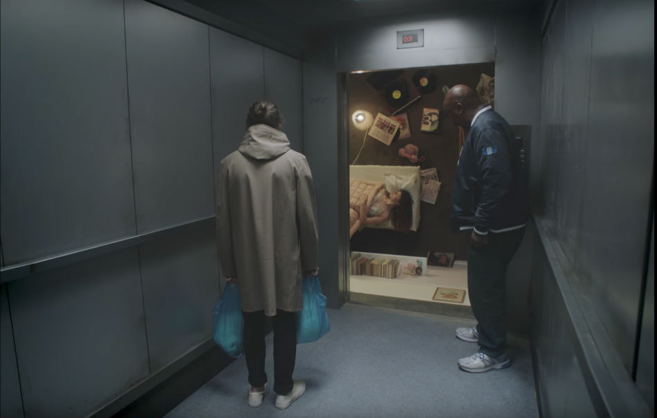 Il frontman, nel video, è bloccato in questo ascensore armato di buste di plastica e cappottone anti-inverno: ha un’espressione dispersa e fissa il pavimento. Ogni tanto qualcuno passa a fargli un po’ di compagnia, ma la macchina da presa si concentra quasi esclusivamente sulla sua solitudine.