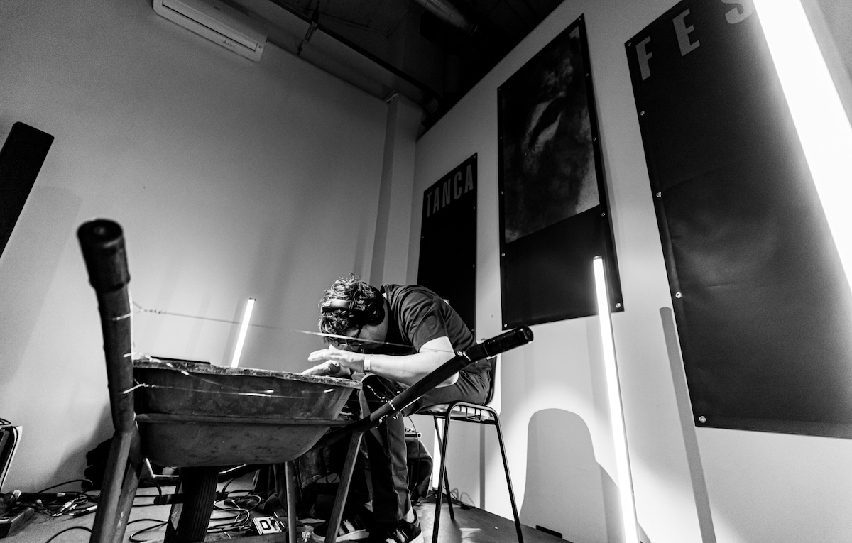 Il fil rouge del Tanca Fest è dunque un metodo di trattamento, una possibilità di ricerca, della forma canzone, rimanendo nel contesto della popular music. Condensa nella programmazione esperienze di questo tipo, a vari e diversi livelli di sfiguramento della struttura strofa-ritornello, relazionandosi con la canzone, e portandola a tratti lontanissimo. Su questo solco, nei due palchi allestiti alla Baumhaus, il venerdì si è aperto sul versante più radicale di questo spettro, con la “carriola preparata” di Luca Barachetti. È letteralmente una carriola, quella che suona. Nell’album Rilascio trasforma un oggetto in strumento. Non suona, ma danza con quel ferro vecchio, si raccoglie dentro la sua carriola di metallo, e diventano un tutt’uno. A tratti litigano, a tratti si accarezzano. Sono seguiti poi Agenda dei Buoni Propositi, ovvero Tiziano Parente, classe 2002, poetica elettronica che sembra sempre sul punto di aprirsi e scomporsi, e Lacana, ovvero Filippo Lacana, manco a dirlo sassarese, cantautore. Scrive con la chitarra o con il violoncello, ma insegna pianoforte. Tecnica incredibile al servizio della semplicità e dell’intensità mediterranea. Tornerà la sera successiva, a fine serata, per un set a sorpresa.