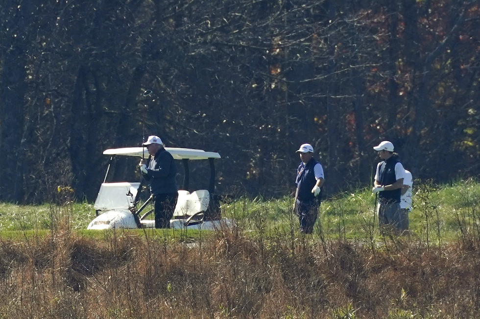 La passione del presidente uscente per il golf e ben nota, così oggi un fotografo della Associated Press ha avuto vita facile quando ha deciso di andare ad appostarsi fuori dal Trump National Golf Course, uno dei campi da golf preferiti di Trump, in Virginia. Circa mezz’ora dopo che CNN e AP avevano assegnato ufficialmente a Biden la Pennsylvania – e quindi un numero sufficiente di grandi elettori per ottenere la presidenza – ecco che Trump si consolava con qualche buca.