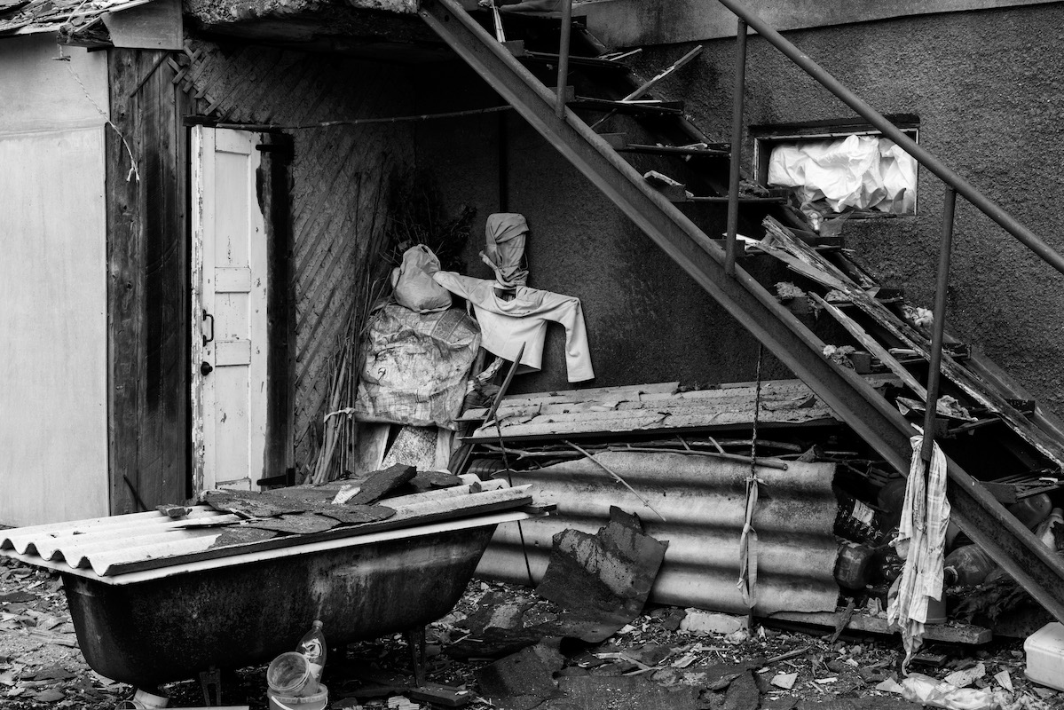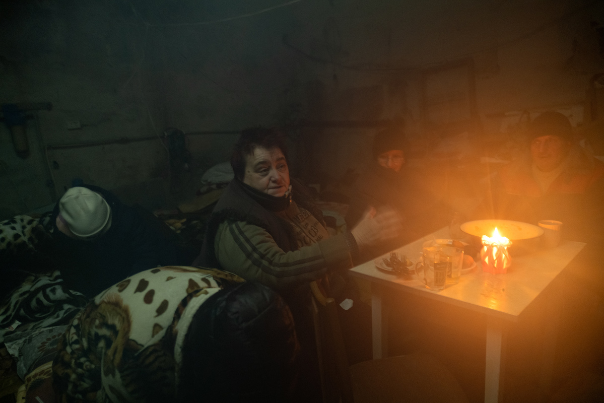 Famiglia rintanata in un freddo e umido scantinato nel villaggio di Buhas, conteso tra russi e ucraini. Intorno a loro la battaglia impazza ed i missili di entrambi gli schieramenti piovono ovunque. “Avremmo scappare la la strada era diventata troppo pericolosa e quindi abbiamo dovuto nasconderci qui” racconta Alexandr, il capofamiglia. Nel bunker in cui si rifugiano non c'è riscaldamento né acqua corrente. Le riserve dei viveri sono risicate. <br /><br />Foto: Gabriele Micalizzi<br /><br />Testo: Luca Steinmann
