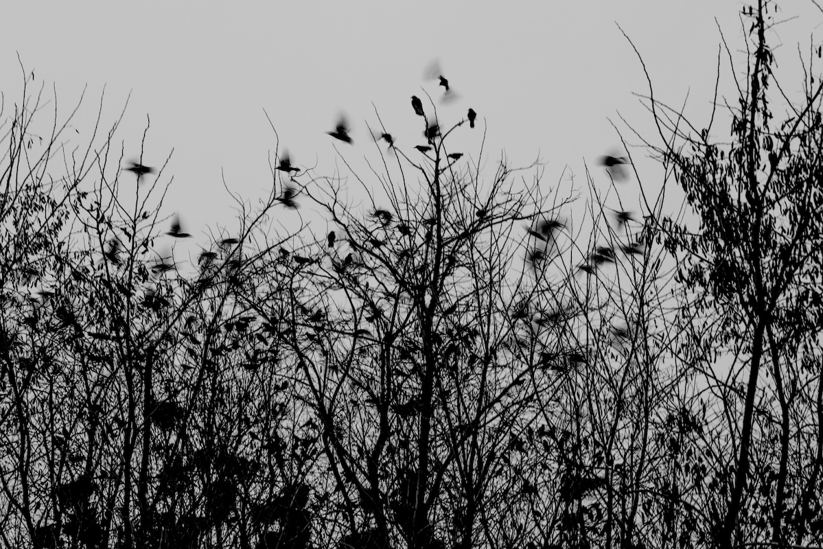 Stormi di uccelli migratori si posano sugli alberi della steppa mentre intorno a loro impazza la battaglia. In corrispondenza dei rumori delle esplosioni spiccano il volo ma poi tornano a riposare sulle piante. Manterranno la loro rotta nonostante la guerra e le distruzioni. <br /><br />Foto: Gabriele Micalizzi<br /><br />Testo: Luca Steinmann