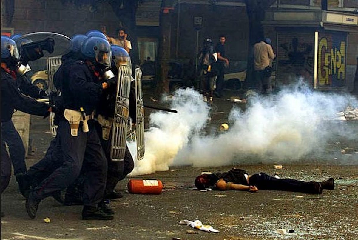 Inutile confondere i ventitré anni di vita con i ventiquattro anni di nulla in cui siamo oggi sprofondati. Inutile stabilire la misura quando si stabilì la morte come punto esatto di partenza per pochi e di immobilità per molti. Anche chi non fu a fianco di quei corpi in movimento poi non potè non essere per sempre a fianco di quel corpo immobile in piazza Alimonda con tutto il rischio del ridicolo che tutto questo comporta, con tutto il rischio di non essere creduti dai soliti e sbeffeggiati dagli altri quelli che confondono la morte con lo spegnimento e vivono la vita a colletto alzato, beati loro.