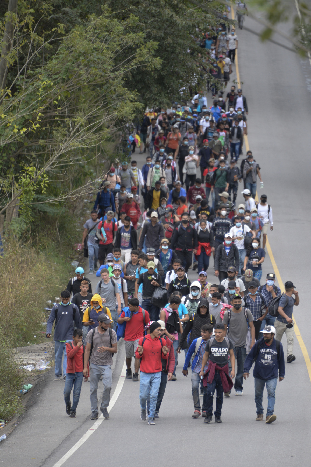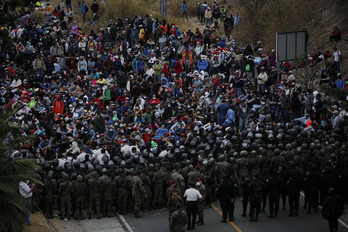 Una grande carovana di migranti è in marcia in America centrale nel tentativo di raggiungere gli Stati Uniti. 8000 persone, provenienti dall’Honduras e in fuga dalla disastrosa situazione in quel Paese – dove la pandemia si somma alla povertà – sono riuscite a entrare settimana scorsa in Guatemala.<br /><br />Foto: JOHAN ORDONEZ/AFP via Getty Images Foto: JOHAN ORDONEZ/AFP via Getty Images