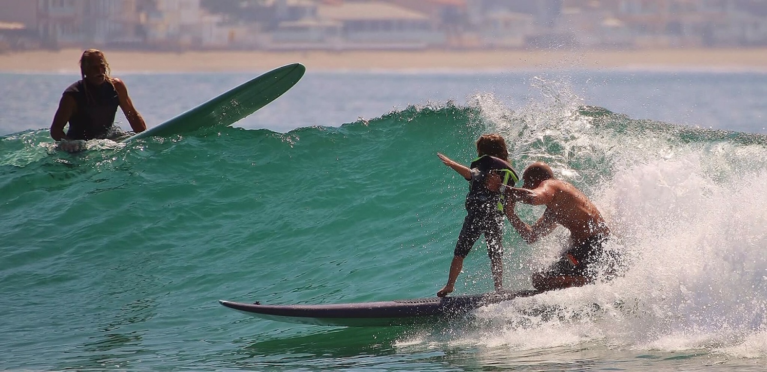 L’espressione di gioia stampata sul volto dei bambini che cavalcano un’onda in tandem con Jean Pierre Pereat, è abbastanza per farti scoppiare il cuore. «L’oceano è il parco giochi che ci rende tutti uguali; lì vado a curare me stesso prima ancora dei miei clienti» dice l’atleta losangelino che da più di 20 anni pratica la terapia del surf in aiuto di bambini autistici o con disturbi di vario genere. «La parola autismo compie una curva simile a quella di un arcobaleno: da un estremo all’altro esistono vari livelli di funzionalità, ma tutte le persone affette sono molto intelligenti. Io li chiamo i bambini dotati perché sono sempre felici e sanno vivere nel presente». Ci spiega che un bambino con cui ha lavorato per 5 anni e che per tutto questo tempo non ha mai proferito parola, un giorno d’inverno dopo una sessione nell’acqua gelida, l’ha guardato negli occhi e ha improvvisamente esclamato: happy. «Una parola sola può significare più di mille altre» commenta Pereat, detto Peli, il pellicano di Malibu, che ha conosciuto il surf da bambino grazie a un’amica della madre, una campionessa di tandem surfing nel 1969 insieme a Richard August (protagonista del cult movie The Endless Summer).