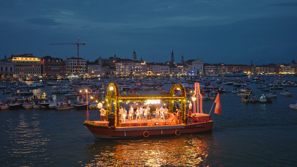 Sabato 19 luglio, già dal pomeriggio, la città ha iniziato a diventare elettrica, con le tipiche imbarcazioni veneziane che, grazie a un inconfondibile tocco di arancione Aperol, hanno attraversato la laguna colorandone i canali. Con la sera che si avvicinava, mentre il sole tramontava dietro le cupole, tra Campo Erberia e Le Zattere il brand veneto ha riempito la città di musica e di arancione.