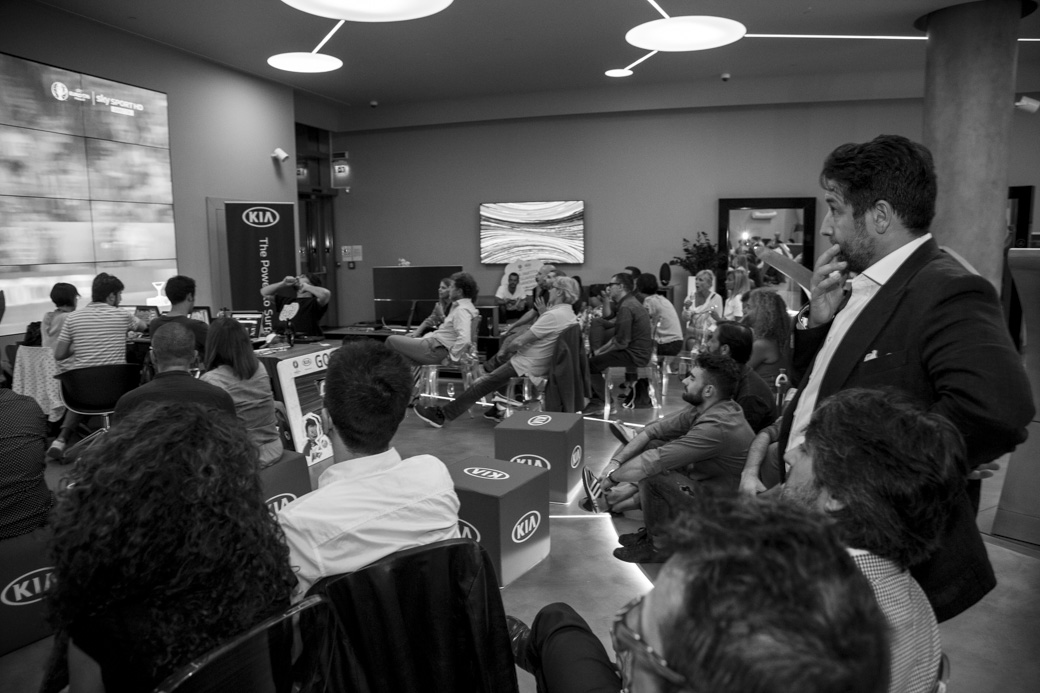 Italia-Irlanda vista dal Divano di Rolling con Kia nella casa tecnologica di Samsung