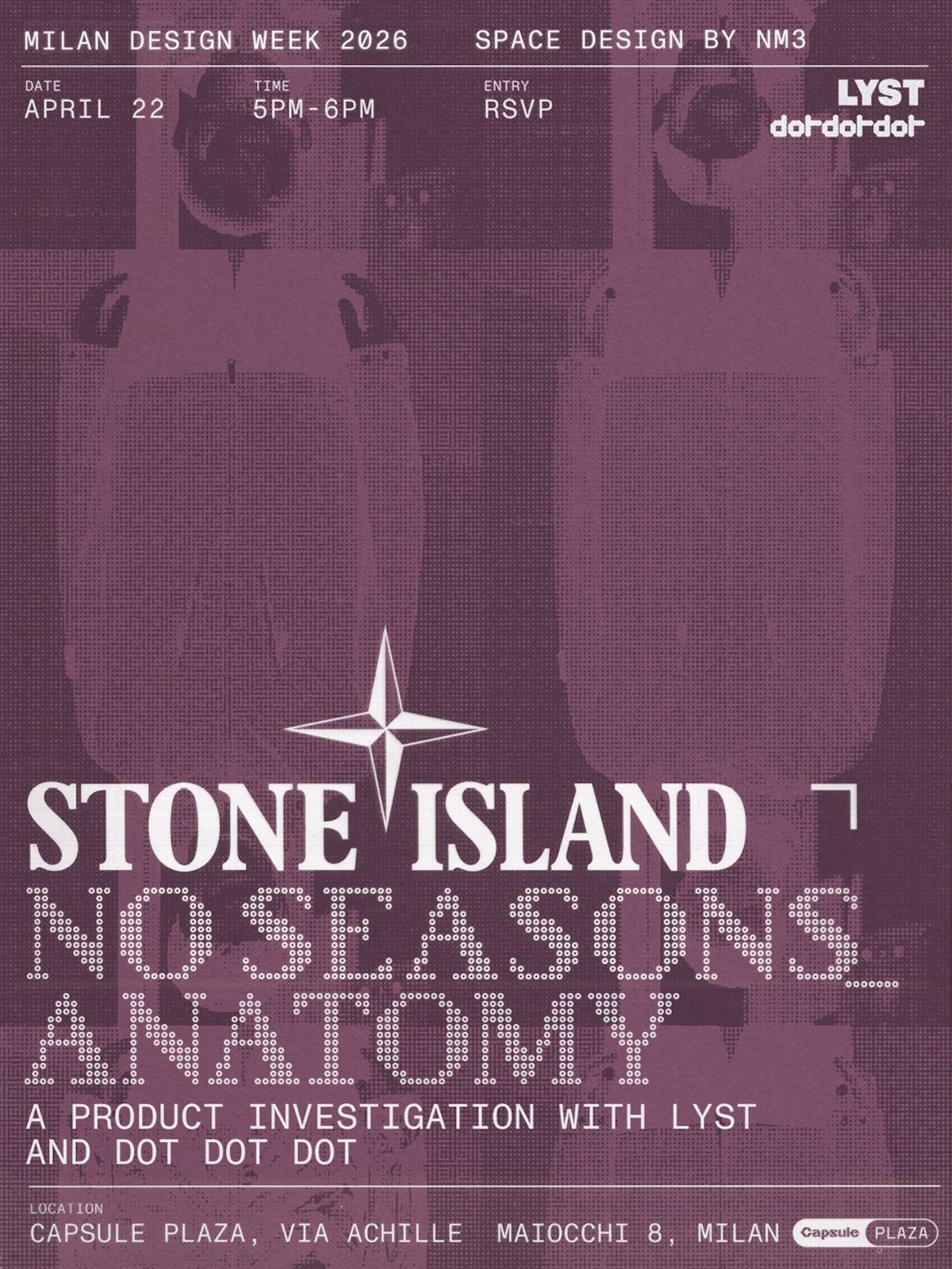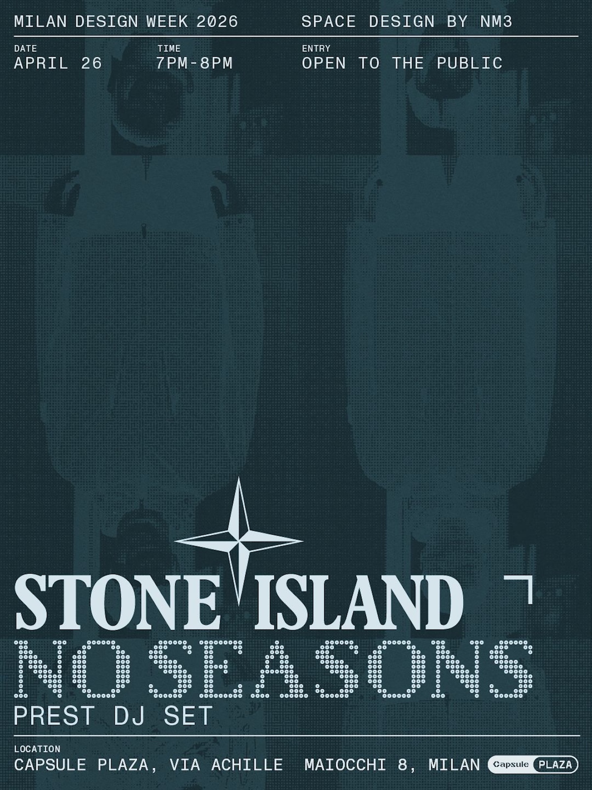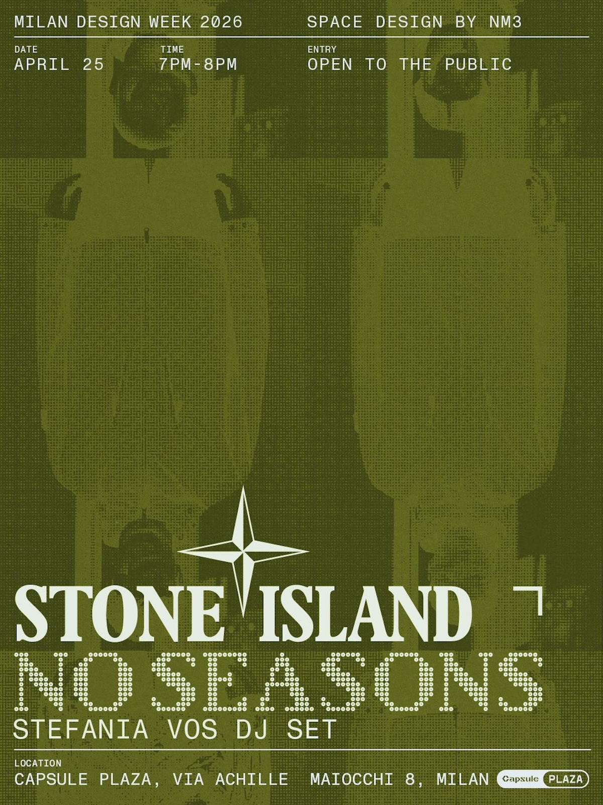 C’è un filo che attraversa la storia di Stone Island e ogni tanto riemerge, ma sempre sotto forme nuove. Questa volta lo fa alla Milan Design Week 2026, dove il marchio torna a Capsule Plaza dal 20 al 26 aprile per presentare il nuovo capitolo di NO SEASONS, un’installazione costruita insieme allo studio di interior design milanese NM3.