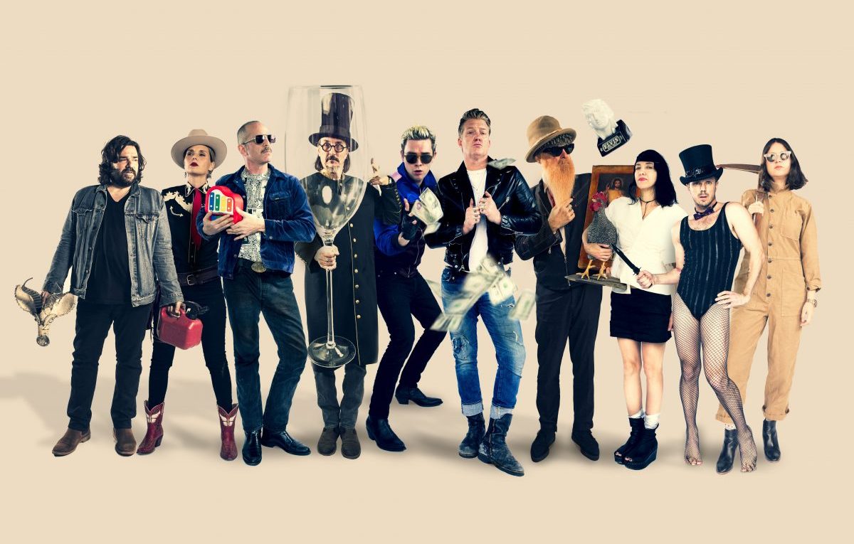 È una cosa che Homme fa ogni tanto, quella d’inviare musicisti e amici nel suo studio nel bel mezzo del nulla. In quel posto nel deserto, dice, ci si libera di preconcetti e corazze difensive, si è più disponibili a intrecciare collaborazioni inattese. Homme non organizzava una cosa del genere da sedici anni. Ha penato un po’ per incrociare le agende di Billy Gibbons (ZZ Top), Les Claypool (Primus), Mike Kerr (Royal Blood), Carla Azar, Stella Mozgawa (Warpaint), Matt Berry, Jake Shears (Scissor Sisters), Matt Sweeney e dei misteriosi Libby Grace Hackford e Töôrnst Hülpft. Ci è riuscito nel dicembre 2018, un po’ perché i musicisti erano fermi per le feste e un po’ perché in quel periodo nel deserto di Joshua Tree non fa un caldo mortale.