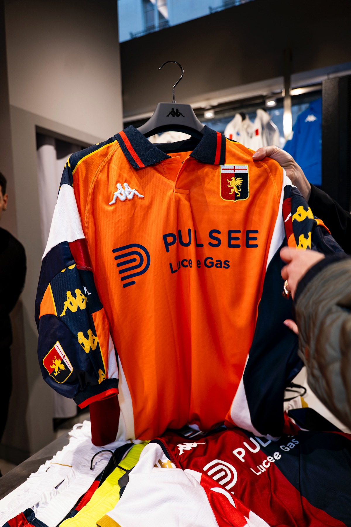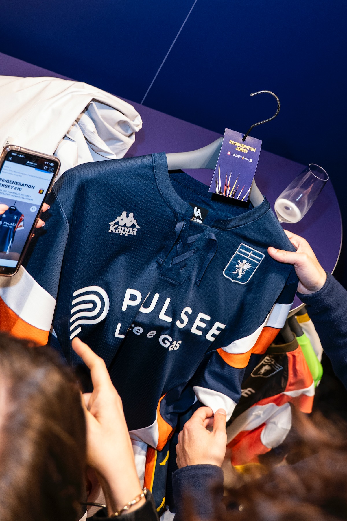 Pulsee Luce e Gas, Genoa CFC e Kappa® hanno presentato con un evento a Milano RE:GENERATION JERSEY, il progetto che trasforma le iconiche maglie da gioco in pezzi di design, grazie alla visione dell’artista Marcello Pipitone. Si parla di t-shirt one-of-a-kind, un’operazione di upcuycling delle maglie ufficiali delle ultime tre stagioni, ovvero quelle firmate che vedono con front jersey sponsor Plusee Luce e Gas e come sponsor tecnico Kappa®. Le foto dell'evento. Foto: Courtesy of Genoa CFC
